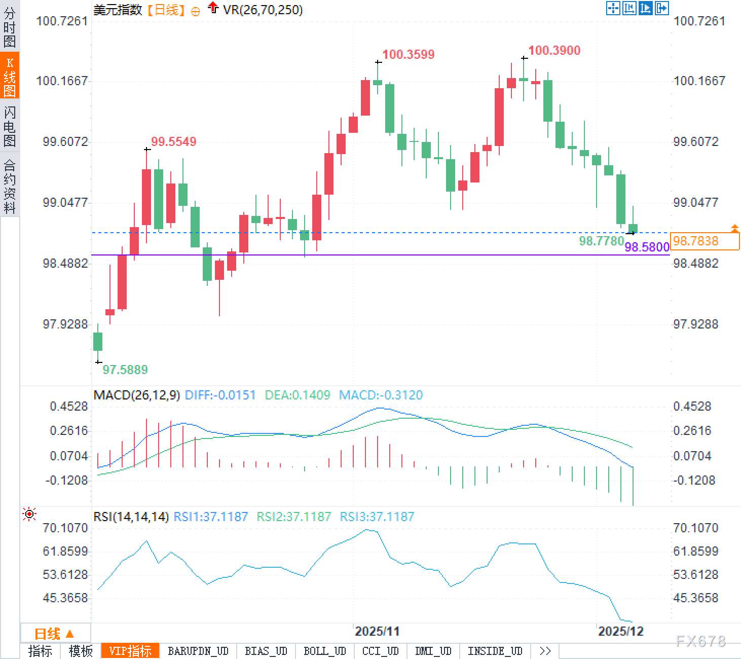 汇通财经APP讯——12月4日,周四欧洲时段,美元指数目前交投98.80附近,正处于一个高度敏感的时间节点。12月10日,美联储将召开联邦公开市场委员会(FOMC)会议,市场普遍预期将下调联邦基金利率25个基点,使利率区间落入3.50%至3.75%。这一操作看似已是“板上钉钉”,背后却反映出美国经济动能正在放缓的现实。劳动力市场逐步走弱、通胀压力持续回落,为降息打开了空间。
