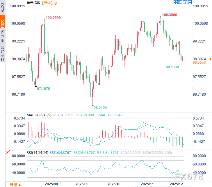北京时间13:59,美元指数现报98.35。